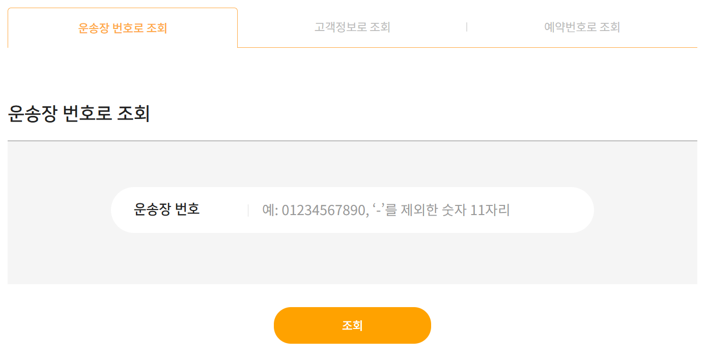 - 배송조회는 운송장 번호, 로그인, 예약번호로 조회할 수 있습니다.