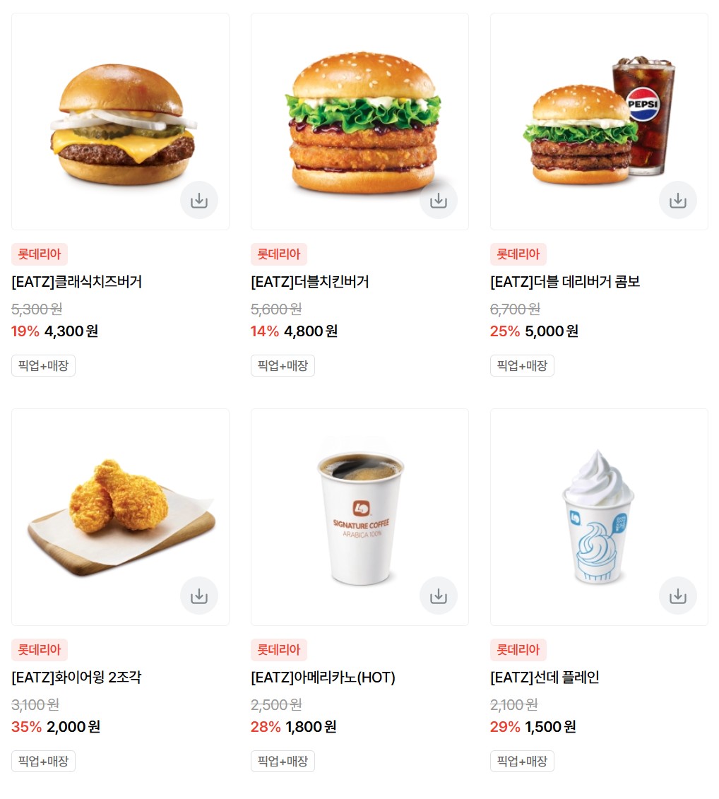 [EATZ] 더블 데리버거 콤보 5,000원 ㅡㅡㅡㅡㅡ> 5,000원 (25% 할인 적용)