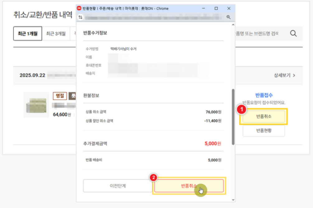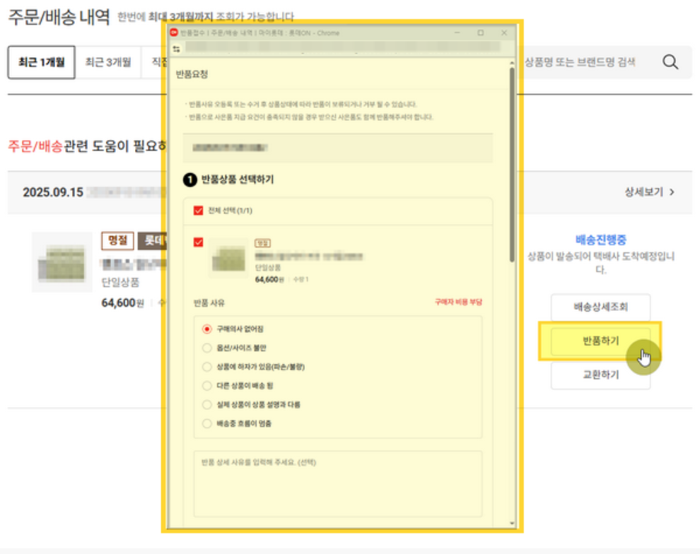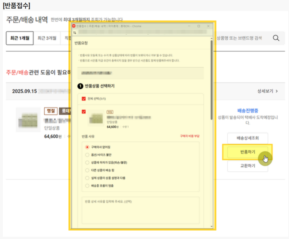 롯데온 반품 접수 방법 안내
