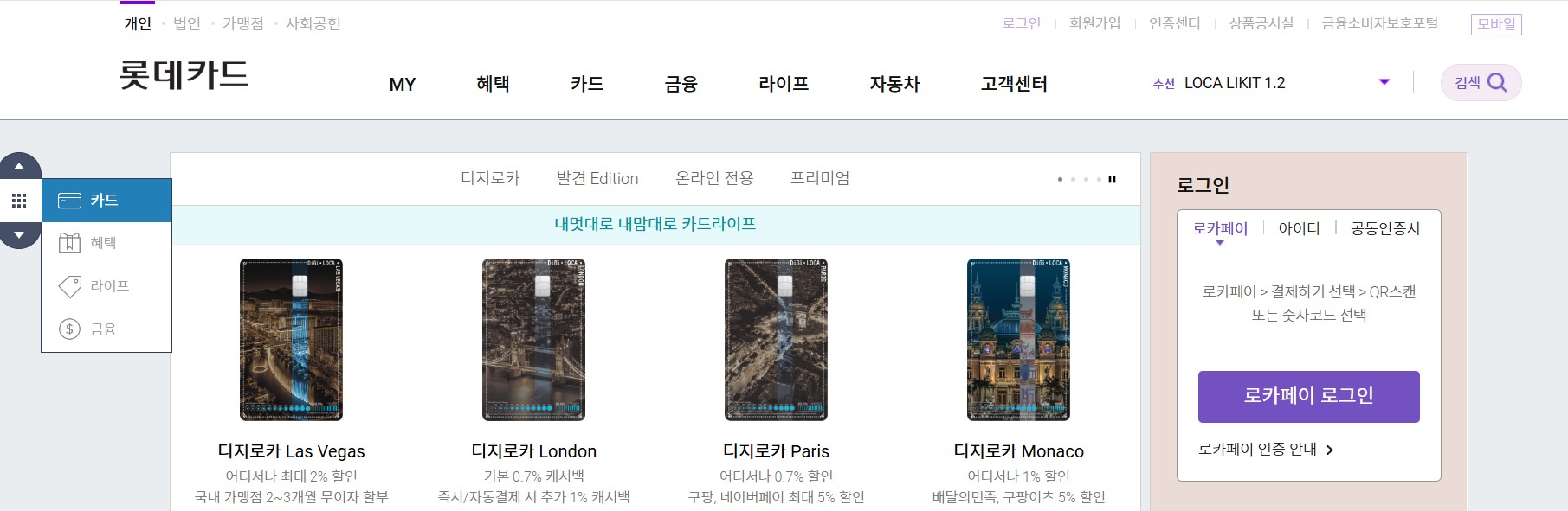 롯데카드 홈페이지입니다.