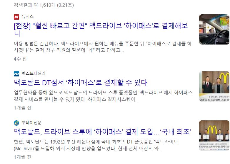 맥도날드에서 맥드라이브에서 하이패스로 결재할 수 있는 서비스를 도입했습니다. 1992년 부산에서 처음 맥드라이브를 선보인 이래로 하이패스 기능을 올해 도입하여 새로운 기술을 선보이고 있습니다.