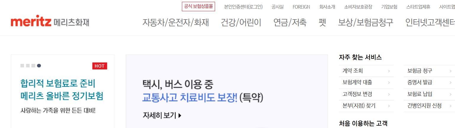 메리츠화재 홈페이지에는