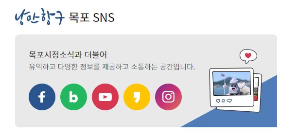 목포시에서는 다양한 SNS 채널을 운영하고 있습니다. 관심있는 분들은 많은 이용 바랍니다.