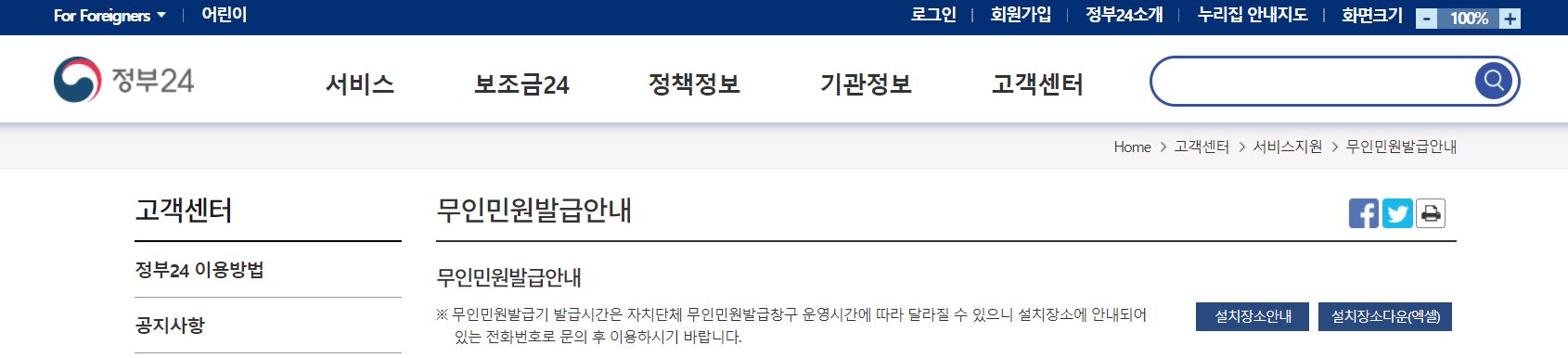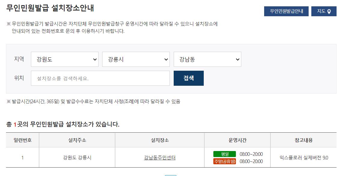저는 홈페이지를 샅샅이 뒤져 민원24홈페이지에서 주변 무인민원발급기 검색이 가능한 사이트를 찾았어요-