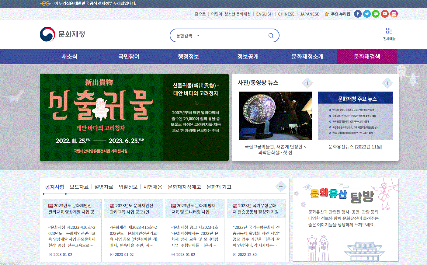 문화재청 홈페이지에서는 다양한 문화재에 대한 소식이 있는데 지금 여기에서는 문화재청 홈페이지에 바로 접속하고 홈페이지에서 볼 수 있는 유용한 정보를 정리해서 알려드립니다.