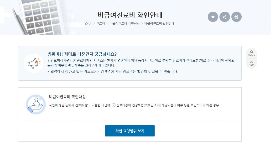 아래 비급여 진료비 확인 바로가기에서 본인인증 후 진료비 내역에 대해서 확인을 하고 문제가 있는 부분이 있으면 확인요청을 하면 됩니다.