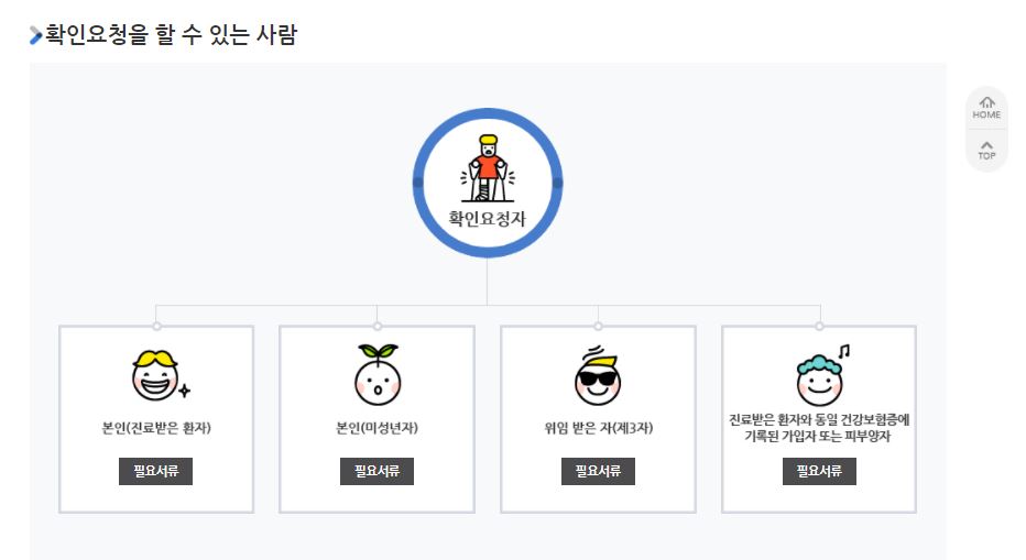비급여 진료비 확인을 요청할 수 있는 사람은 본인(진료받은 환자)과 본인(미성년자) 또는 위임받은 제삼자 그리고 진료받은 환자와 동일 건강보험증에 기록된 가입자나 피부양자가 있습니다.