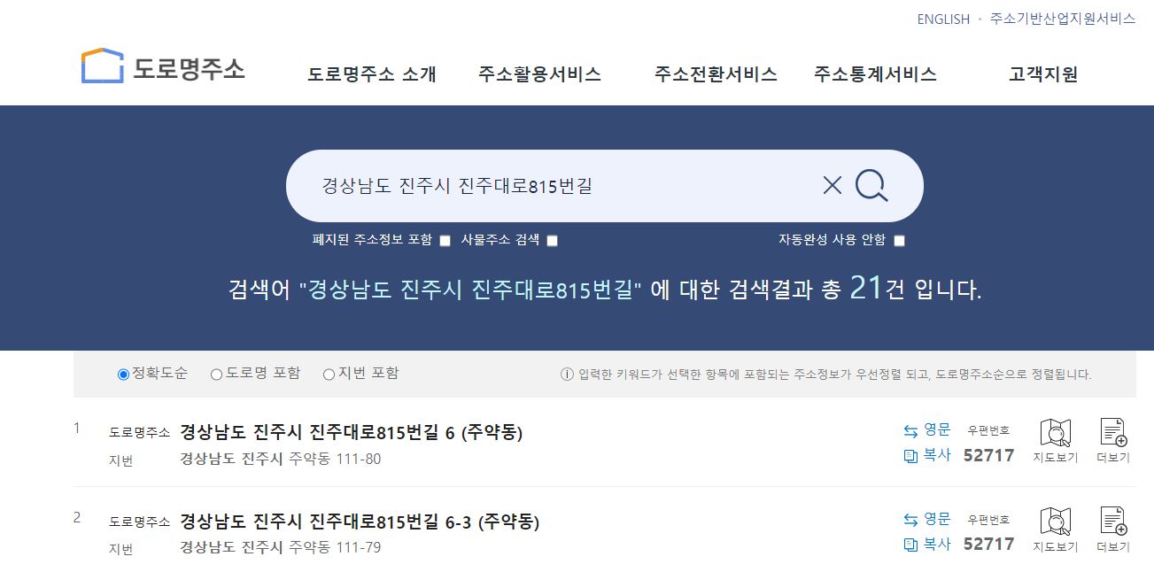1) 홈페이지  https://www.juso.go.kr (행정안전부 주소정보 누리집)에 접근합니다.