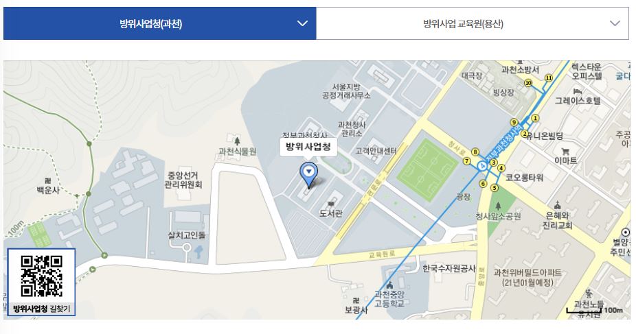 방위사업청은 과천과 용산 두곳에 본청과 교육원이 있습니다.