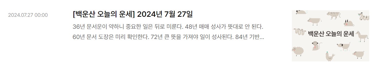 예전에는 지면 신문에서 확인할 수 있던 그날의 운세를 이제는 모바일에서 간편하게 볼 수 있으니 저장해 두었다가 매일 확인해 보시면 그날 운세를 미리 알 수 있어 도움이 될 것 같아요. 그럼 백운산 오늘의 운세 365일 무료로 바로 보기 시작해 볼까요