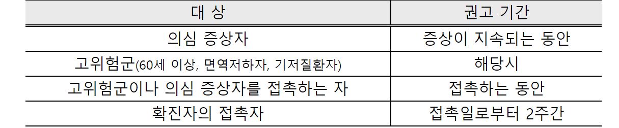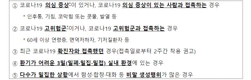 <마스크 착용 적극 권고 상황(방역당국 제시)>