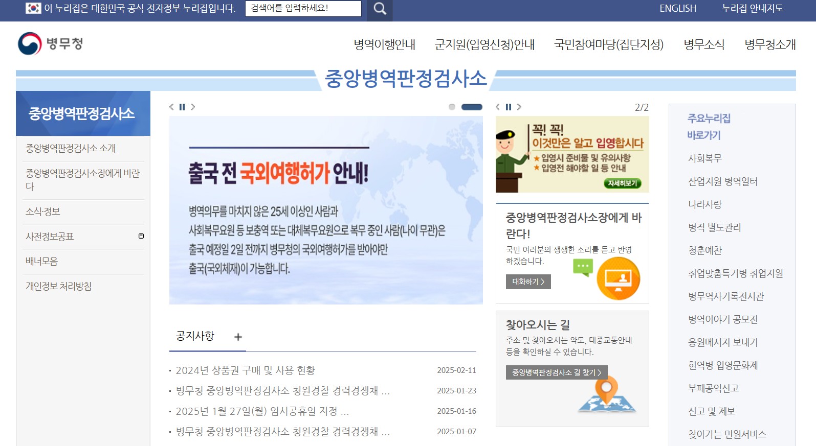 병무청 중앙병역판정검사소 홈페이지 바로가기