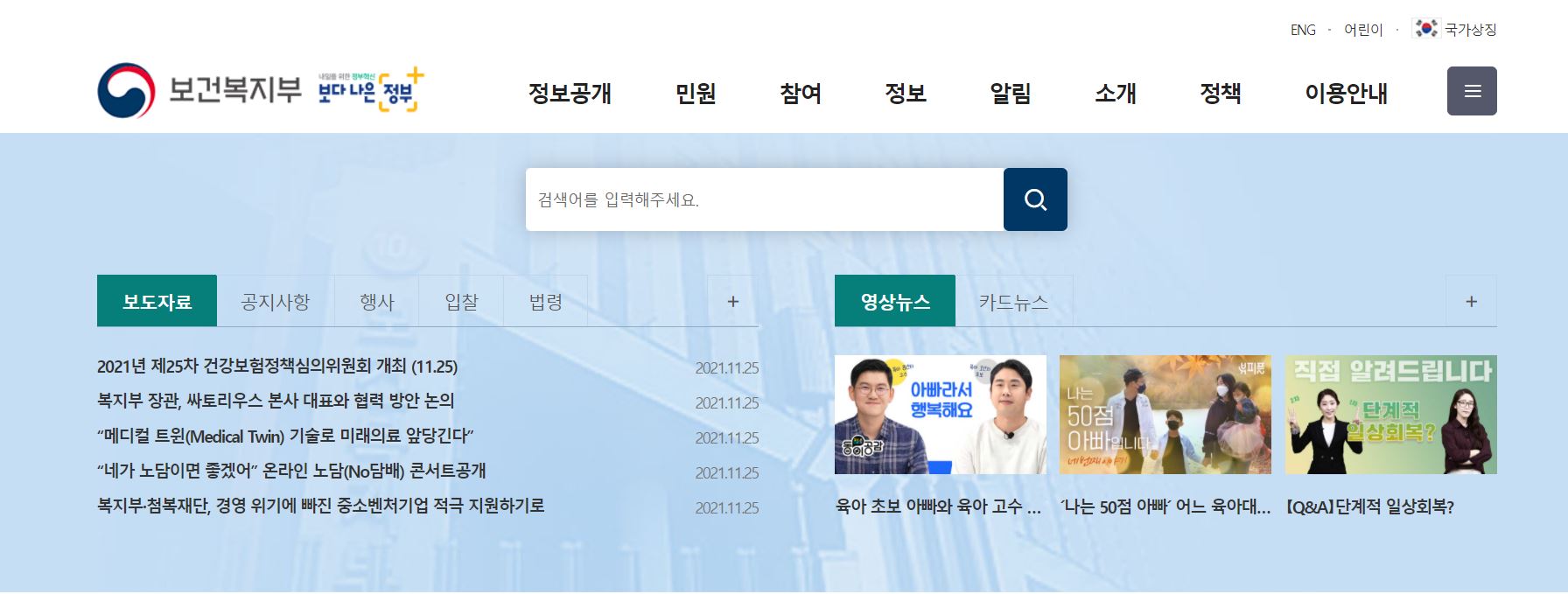 보건복지부 홈페이지