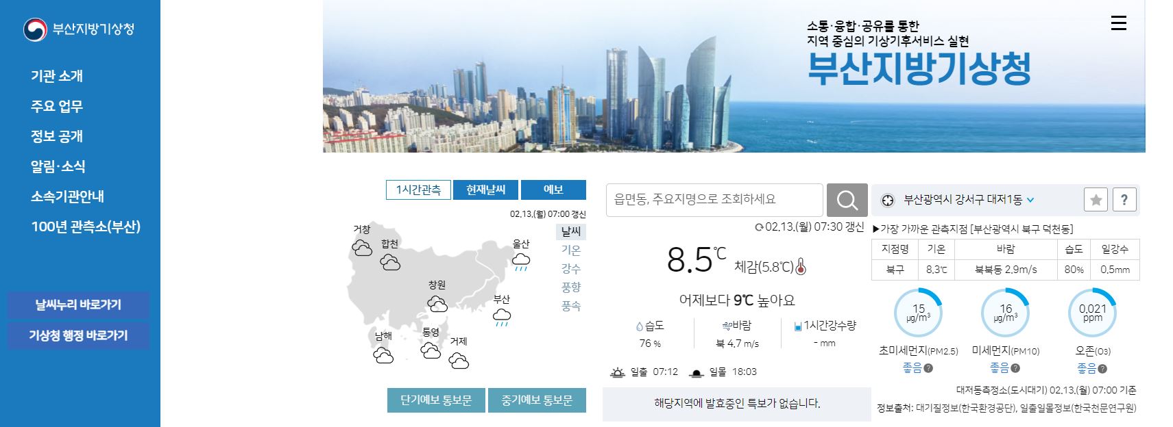 부산지방기상청 홈페이지 바로가기