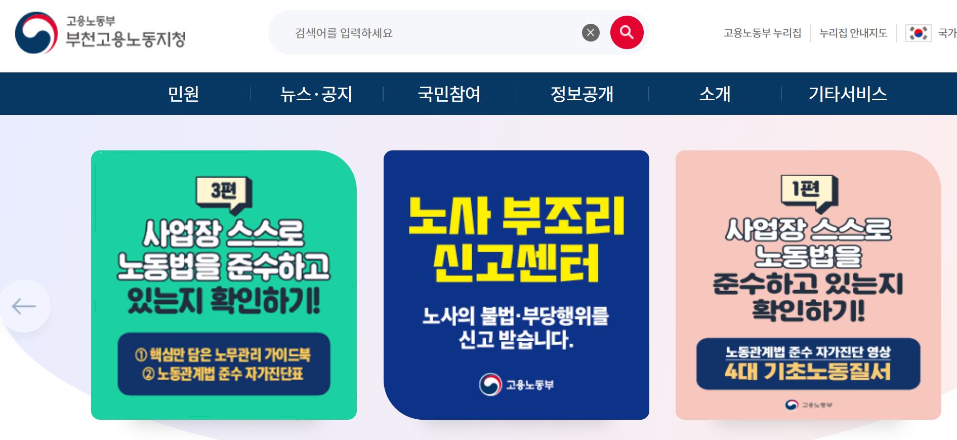 부천고용노동지청 홈페이지 바로가기