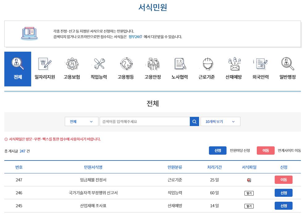 부천고용노동지청과 관련하여 혹은 본인의 고용상황에 대한 민원제기는 부천고용노동지청 홈페이지에서 신청 가능합니다. 부천고용노동지청 홈페이지에 각종 서식이 준비가 되어있으니 홈페이지에서 필요한 서식을 이용하여 신청하면 됩니다. 민원 신청 후 처리기간도 확인 및 민원 신청 후 처리상황 확인도 가능합니다.