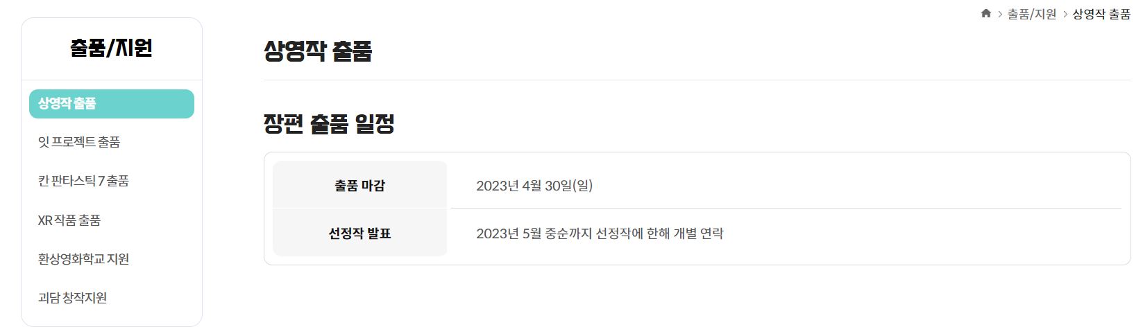 상영작 출품에 대한 정보도 홈페이지에 게시가 되어있습니다.