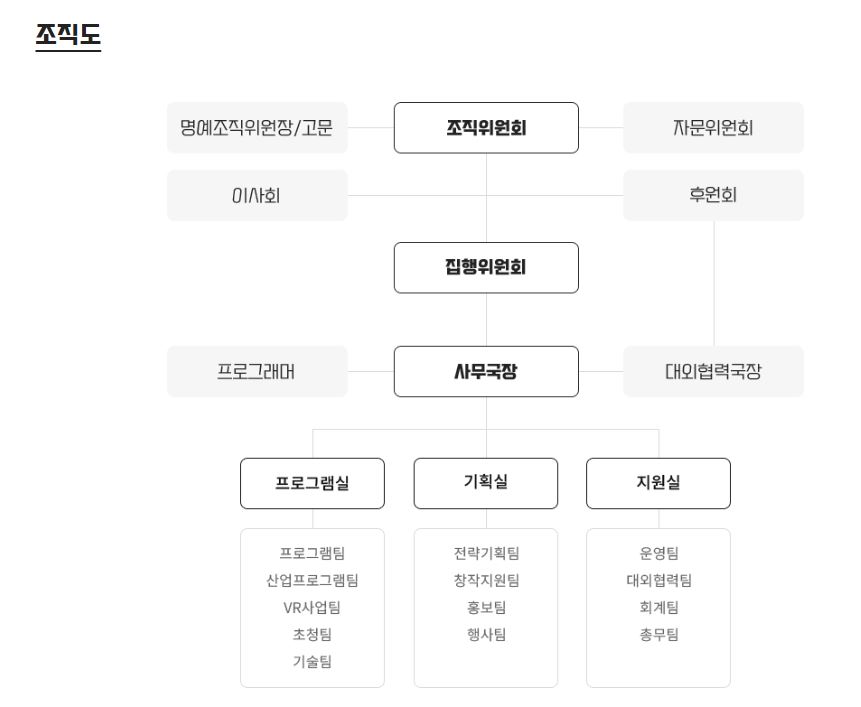 부천판타스틱영화제 조직도는 다음과 같으며 조직위원회를 중심으로 집행위원회와 사무국장 그리고 프로그램실과 기획실 지원실 등이 있습니다.