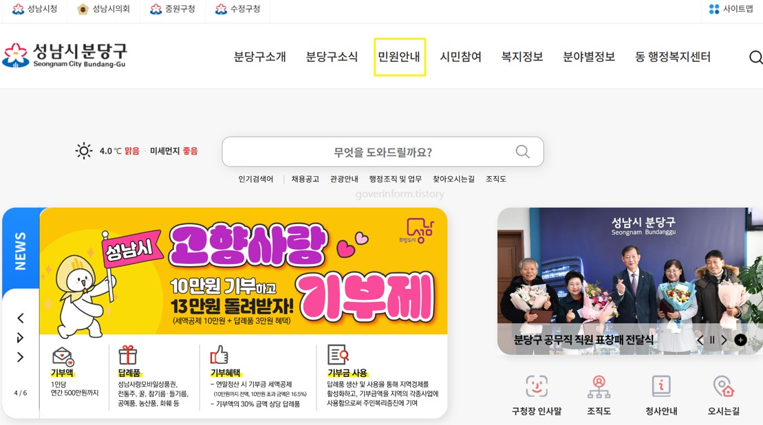4. 분당구 복지/성남사랑상품권/버스노선안내/대형폐기물처리방법 등