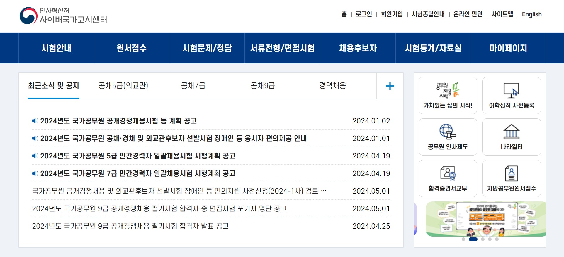 인사혁신처 홈페이지에는 다음과 같은 소식이 있으니 관심 있는 분들의 많은 관심 바랍니다.