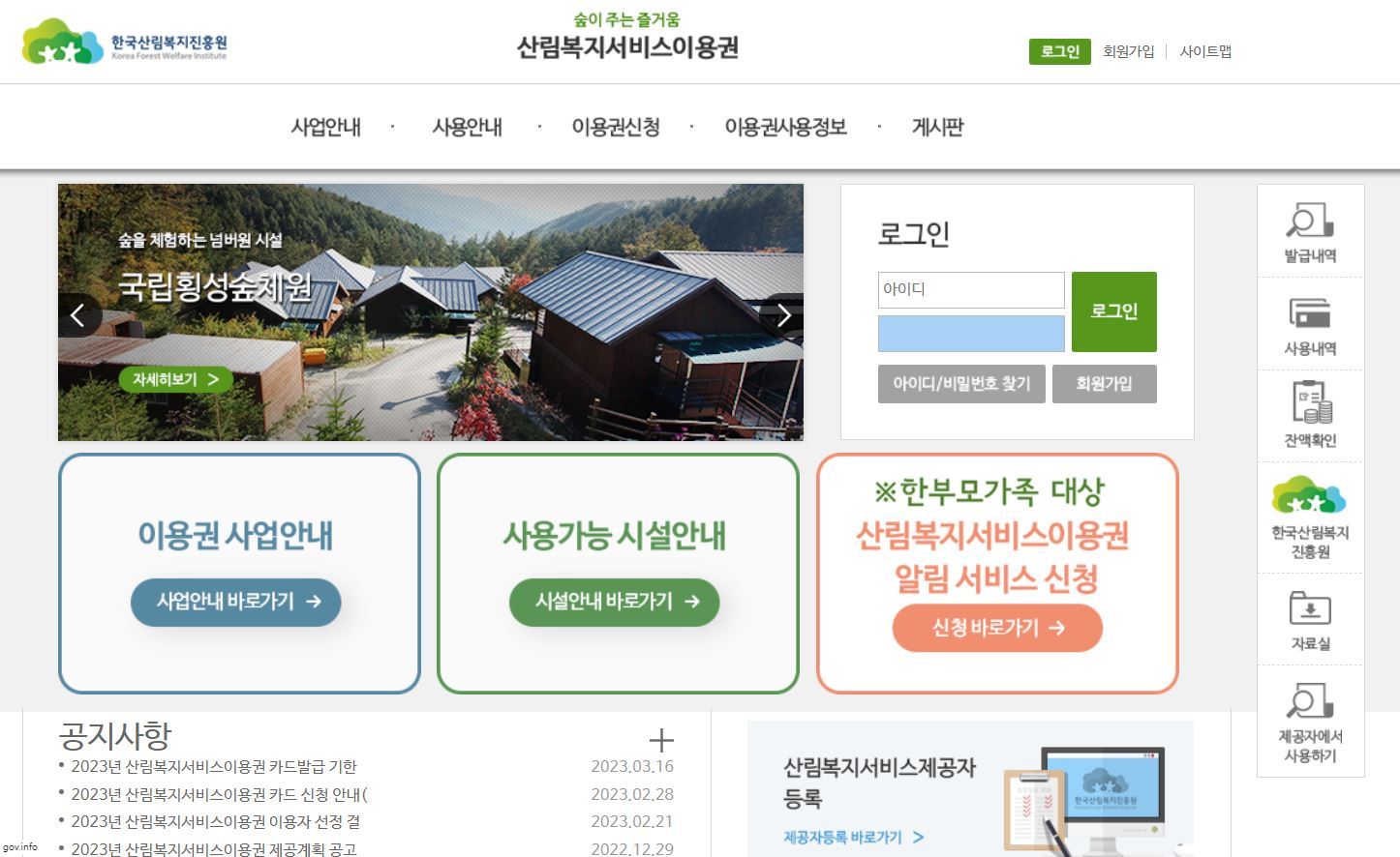 산림복지서비스이용권 사업 안내