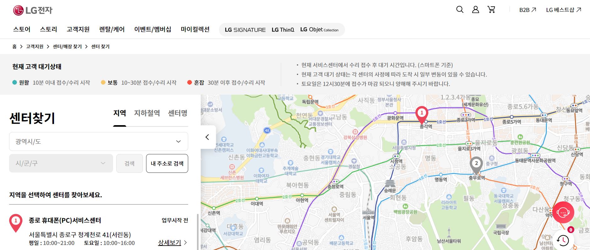 lg전자 센터찾기 서비스입니다. lg도 가까운 곳에 방문하는 것이 편리합니다.