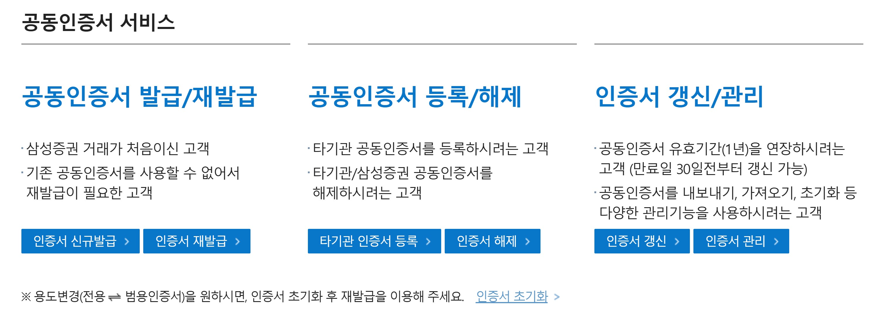 삼성증권 공동인증서/금융인증서/OTP발급 바로가기