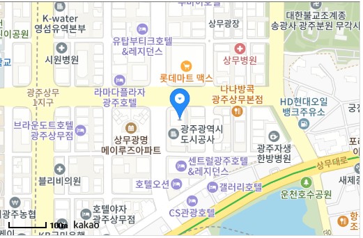 주소는 광주 서구 시청로 30, 2층 (치평동, 삼성화재빌딩)입니다. 상무지구 롯데마트 맞은편 삼성화재빌딩 2층입니다.