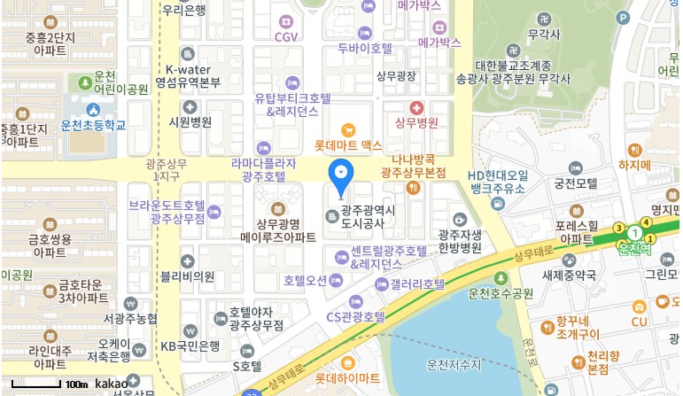 - 교통편: 지하철 운천역 3번 출구, 상무역 55번 출구, 버스 45번, 50번입니다.