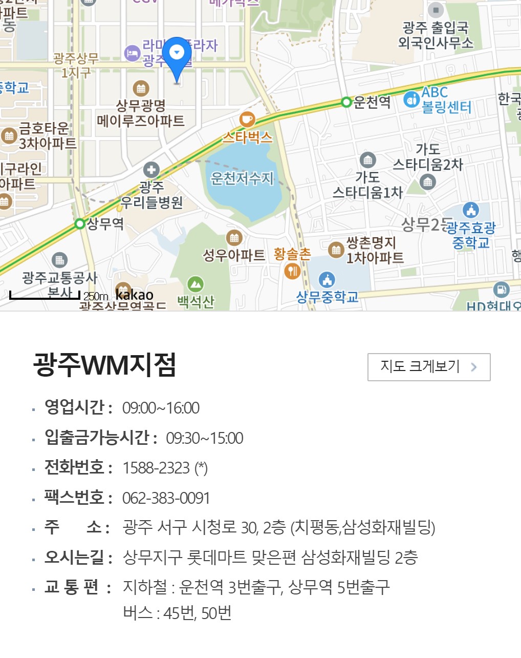 지점안내 검색창에 지역명을 입력하고 검색 버튼을 클릭하면 지점에 대한 상세 안내 페이지를 볼 수 있습니다.