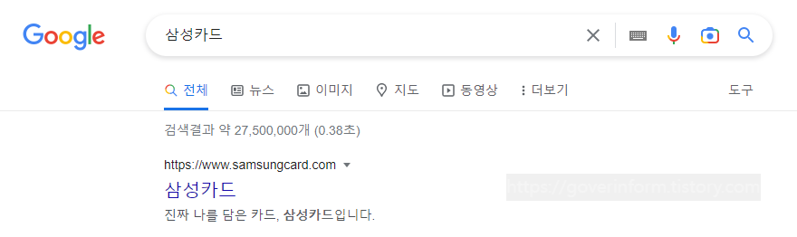 삼성카드 홈페이지에 접속하는 방법은 자주 이용하는 포털 검색창에 삼성카드를 입력하고 검색하면 주소가 나옵니다. 주소를 따라 홈페이지에 접속하면 삼성카드 홈페이지를 볼 수 있습니다.