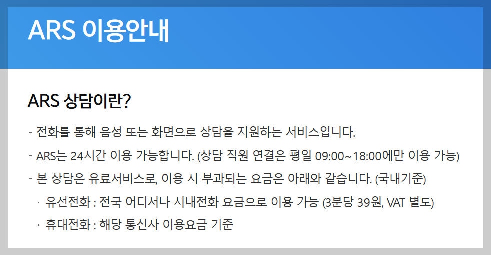 - ARS 단축번호: 빠른 상담 가능