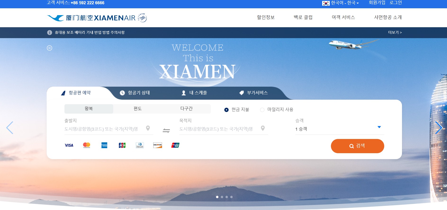 샤먼항공 홈페이지에서 항공권 온라인 예약 서비스를 이용할 수 있으며 다양한 이벤트에 참여할 수 있습니다. 지금 바로 샤먼항공 홈페이지 바로가기에서 확인하세요!