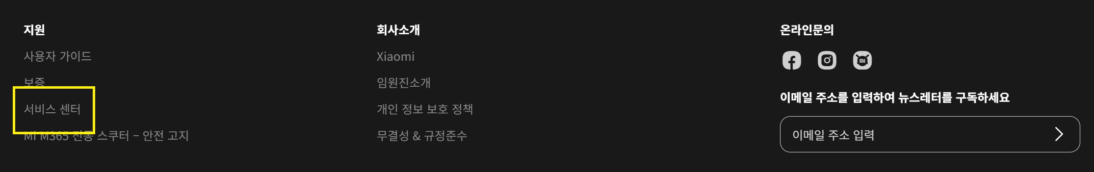 1. 샤오미 공식 홈페이지에 접속합니다. ☞ 바로가기