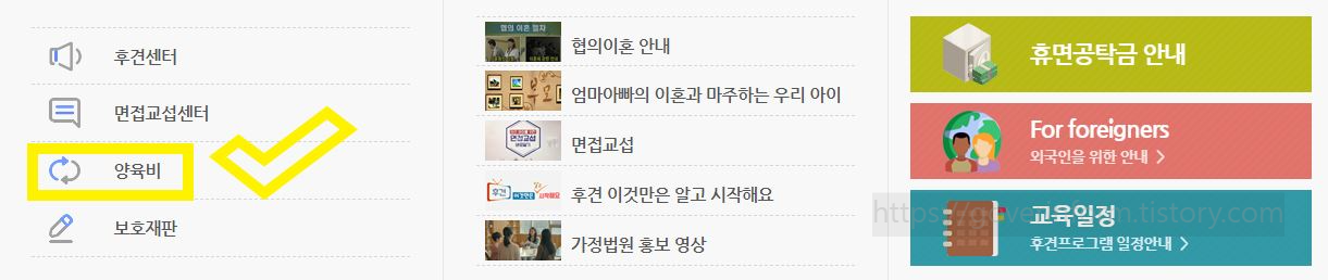 서울가정법원 홈페이지 첫화면에는 양육비 메뉴가 있습니다. 여기에서 최신 양육비산정기준표를 볼 수 있습니다. 양육비산정기준표를 기반으로 자녀 양육시 양육권을 갖고 있는 사람이 상대방에게서 양육비를 받을 수 있습니다. 양육비 지급을 안할 경우, 양육비를 다시 받을 수 있는 방법도 있습니다.