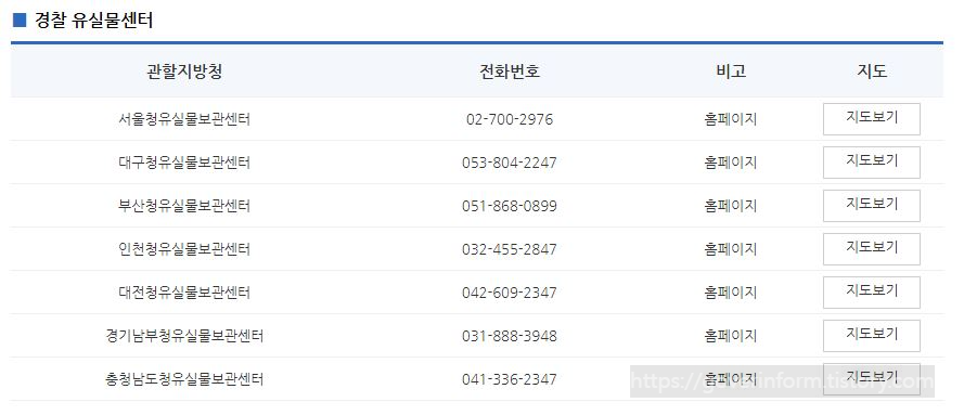 습득물, 분실물의 신고접수와 반입 또는 보관 및 반환 등 유실물 업무를 취급하고 있는 전국 관할관서 목록입니다. 각 분류를 선택하면 해당 분류에 따른 관할관서 목록을 확인할 수 있습니다. 경찰 유실물센ㅌ, 전국경찰관서, 자치경찰단, 코레일, 지하철 및 버스조합, 공항이 있습니다.