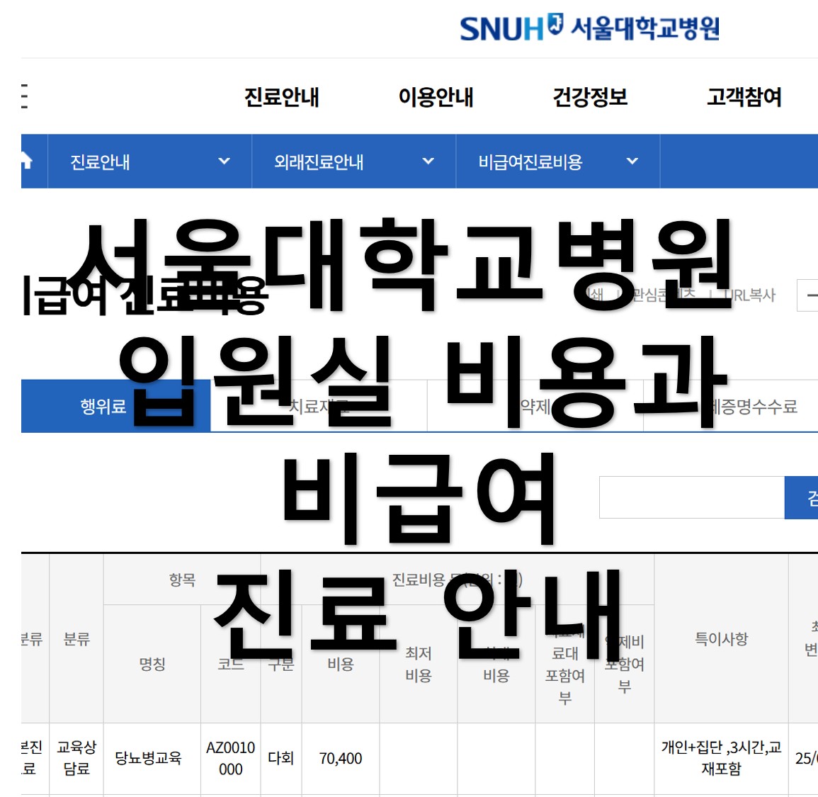 지금부터 서울대학교병원 홈페이지에서 비급여 진료비용을 확인하는 방법에 대해 알아보려고 합니다.