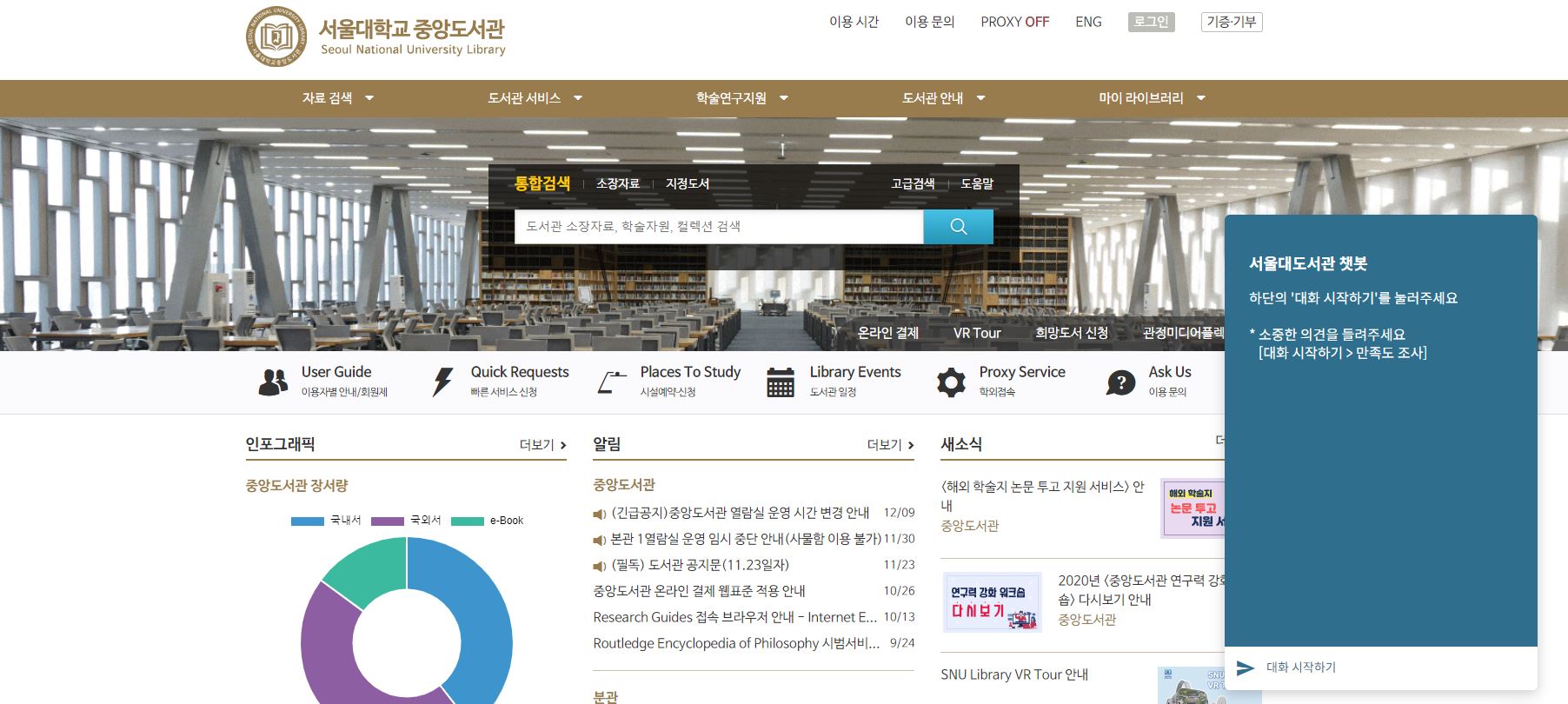 서울대학교 중앙도서관 홈페이지