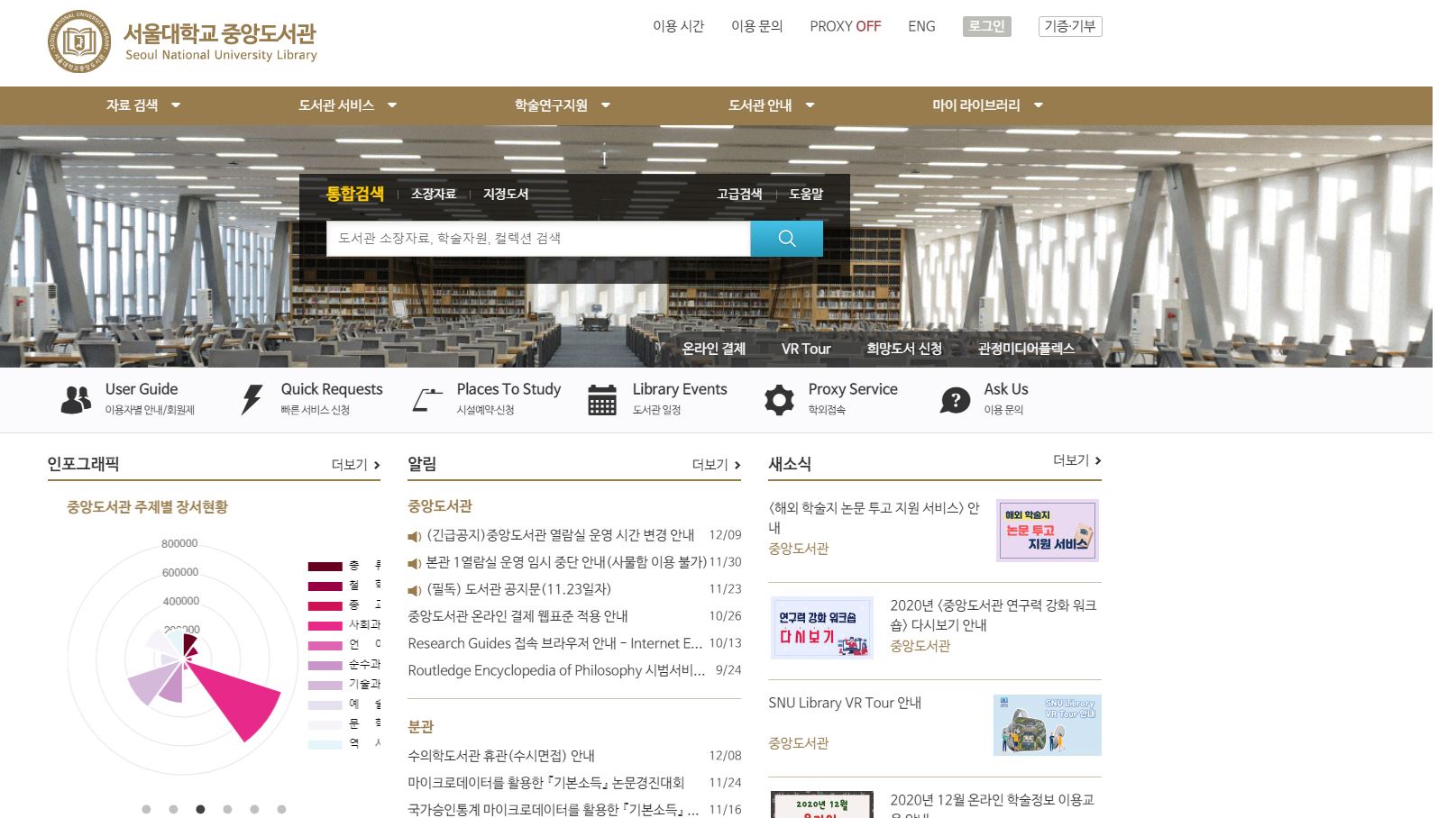 서울대학교 중앙도서관 홈페이지