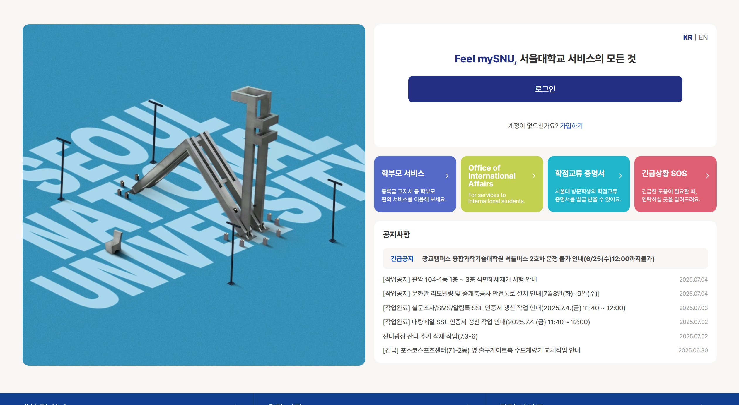 서울대 포털 사이트 로그인 바로가기