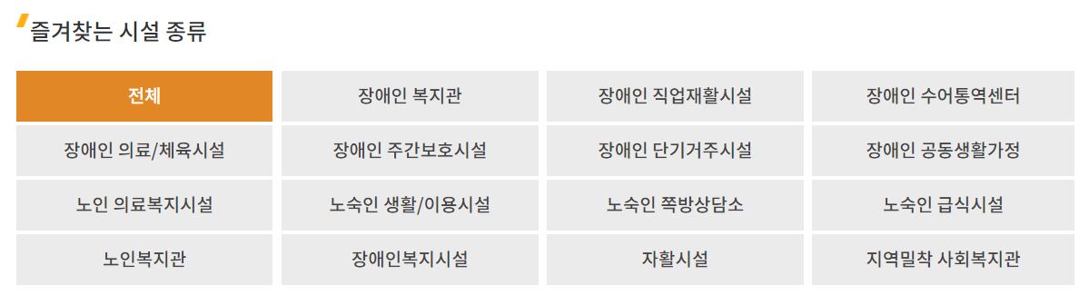 어르신, 장애인, 여성/아동, 한부모/다문화, 복지관/자활, 건강/재활 관련한 복지서비스도 한눈에 볼 수 있습니다.