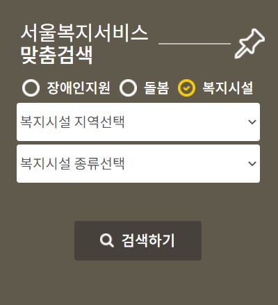 복지시설의 경우 복지시설 지역을 선택하고 복지시설 종류를 선택하면 조건에 맞는 복지정책을 알려줍니다.