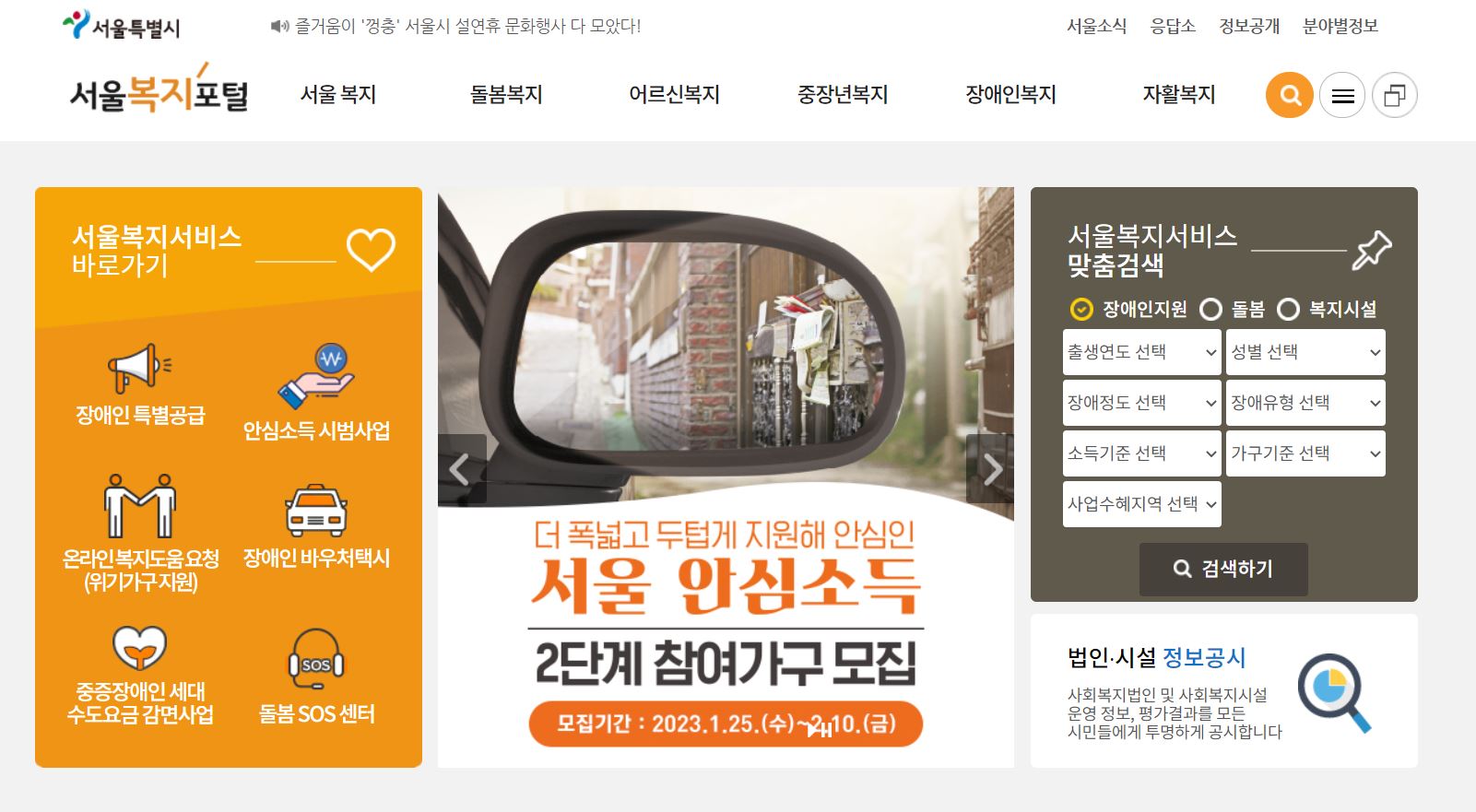 서울 안심소득 참여가구모집, 서울복지서비스 맞춤검색 등이 있어 편리하게 내게 맞는 복지서비스를 조회할 수 있는 곳이 바로 서울복지포털입니다.