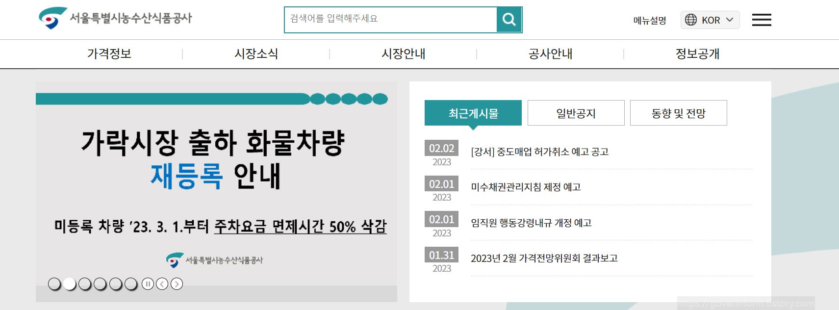 구글검색창에 서울시농수산식품공사 라고 입력하고 검색을 하면 나오는 url(https://www.garak.co.kr/main/main.do)에 접근하면 서울시농수산 식품공사 홈페이지 이용 가능합니다.