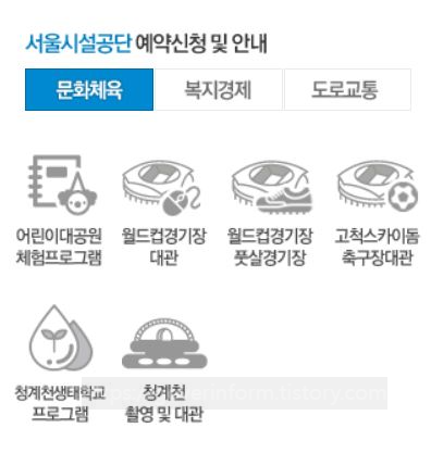 구글 검색창에 서울시설공단을 입력하고 나오는 url(https://www.sisul.or.kr/)에 접근하면 서울시설공단 홈페이지 첫화면이 나옵니다. 서울시설공단에서는 복지경제 문화체육 도로관리 시설안전 교통사업 시민광장 공단소개 정보공개가 있습니다. 서울시설공단 예약신청 및 안내(문화체육, 복지경제, 도로교통) 시민의 소리 시민서비스헌장 안전신고 및 포상 시민제안 및 포상 보도자료 도로 안전 지킴이 행사/이벤트 새 소식 사회공헌 입찰공고 채용정보 안전특보 등 서비스가 있습니다.