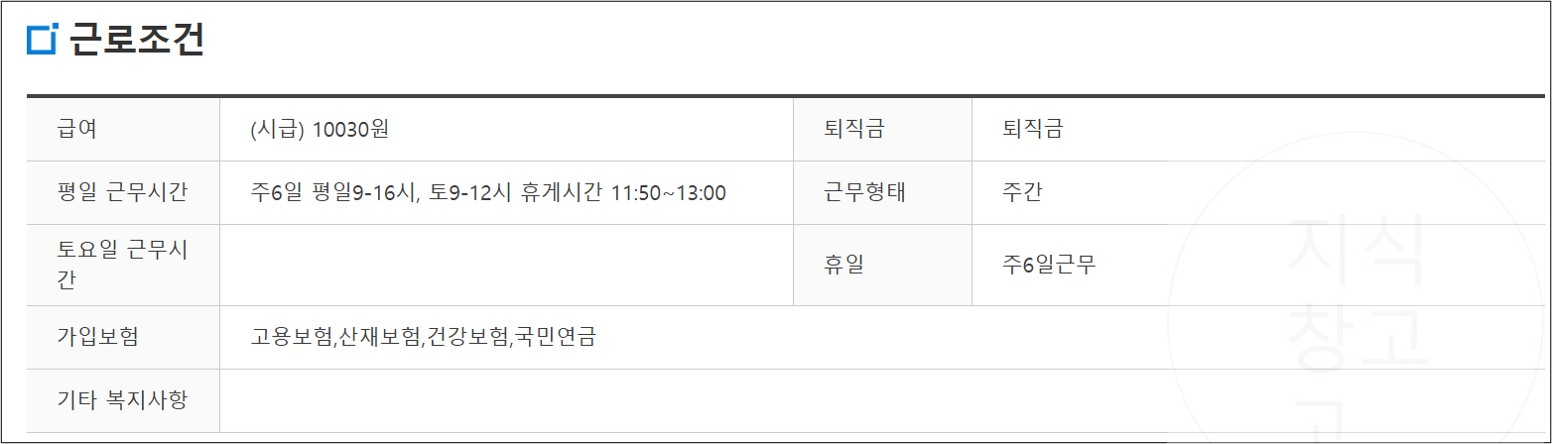 채용공고 확인 시 구인정보 그리고 근로조건을 확인할 수 있으니 확인하고