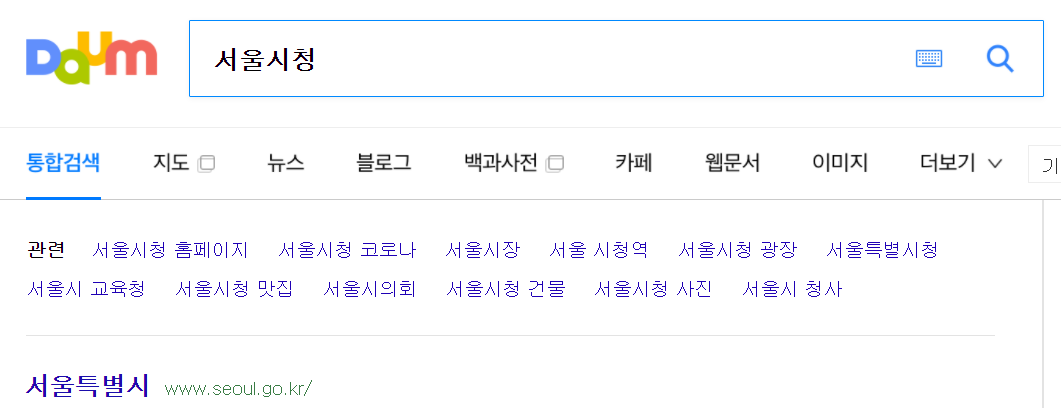 홈페이지 접속방법은 평소 이용하는 포털에 서울시청을 입력한다음 아래와 같이 나오는 서울시청 홈페이지 주소에 접속하면 됩니다.