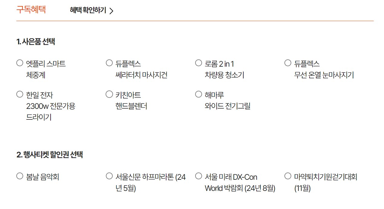 ·구독 사은품/행사티켓 할인권 선택