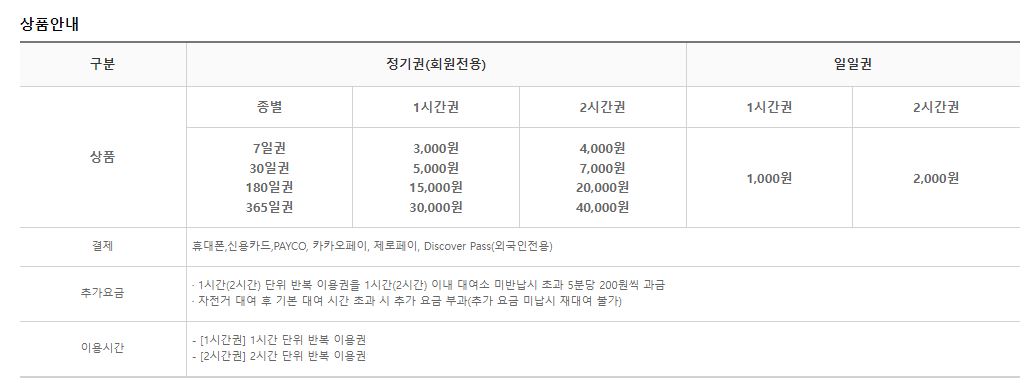 따릉이 대여는 첫 대여 후 대여시간안에 정상 반납시 권종별 기간 동안 대여횟수 제한없이 재대여가 가능하며 이용 가능시간은 첫 회 대여시점을 기준으로 계산됩니다. 서울자전거 모든 대여소에서 사용이 가능하며 양도는 불가합니다. 기본 이용시간 초과시 초과된 시간만큼의 비용이 처음 이용권 구매시 사용된 수단으로 부과가 됩니다.