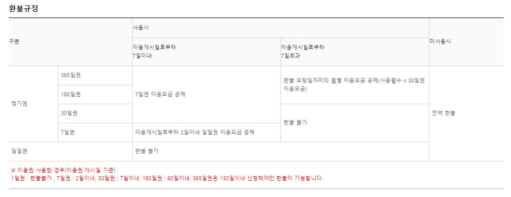 환불규정은 하단과 같으며 참고하시기 바랍니다.